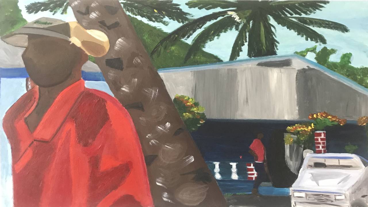 The Lakay series was born after my trip to Haiti in 2016 for my grandmother’s funeral. She raised me and was the one who brought me to Haiti every summer, planting in me a deep connection to the place and its spirit. Creating these paintings became my way of grieving her loss while also honoring the love, faith, and respect she instilled in our family. In the wake of her passing, I felt a profound responsibility to understand my culture more deeply and to reflect on what Haiti truly means to me. This series is both a tribute to my grandmother and grandparents, who built a strong community in Haiti, and a personal commitment to keeping their legacy alive